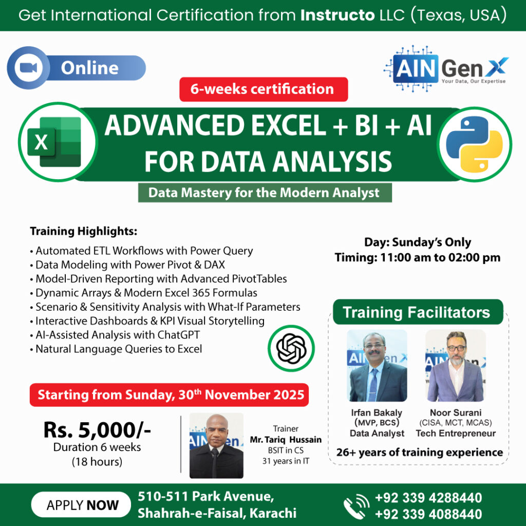 In today’s data-driven world, mastering Advanced Excel, Business Intelligence (BI), and Artificial Intelligence (AI) is essential for effective analysis. Advanced Excel empowers users with dynamic formulas, pivot tables, and automation to handle complex datasets. BI tools, such as Power BI and Tableau, transform raw data into interactive dashboards for faster decision-making. AI adds another layer by enabling predictive analytics, pattern recognition, and automated insights. Together, these tools help professionals move beyond traditional reporting to smarter, data-backed strategies. Whether for business growth or research, Advanced Excel + BI + AI offers unmatched power in turning data into meaningful action.