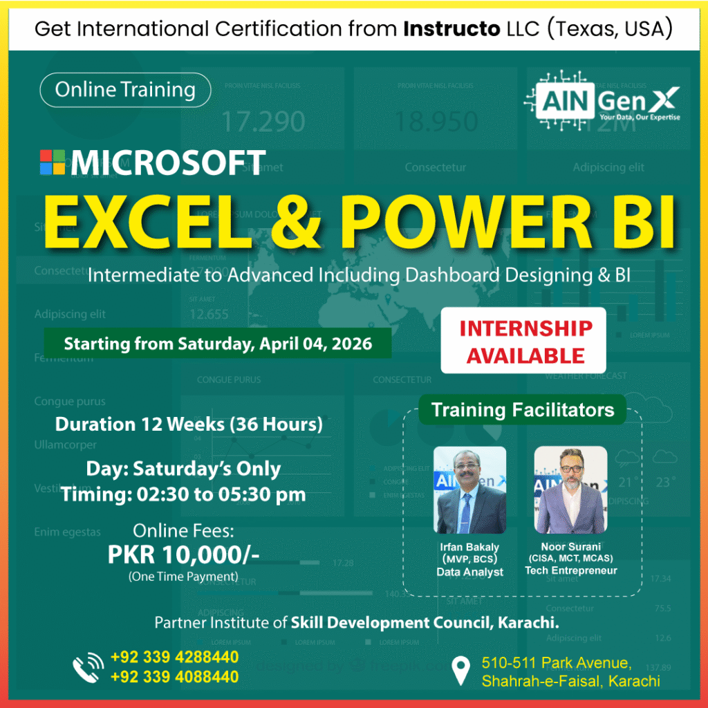 This training equips you with hands-on experience in Excel’s advanced functions, Power Query, Power Pivot, and Power BI’s data modeling & visualization. These skills help you build intelligent reports and automate workflows.