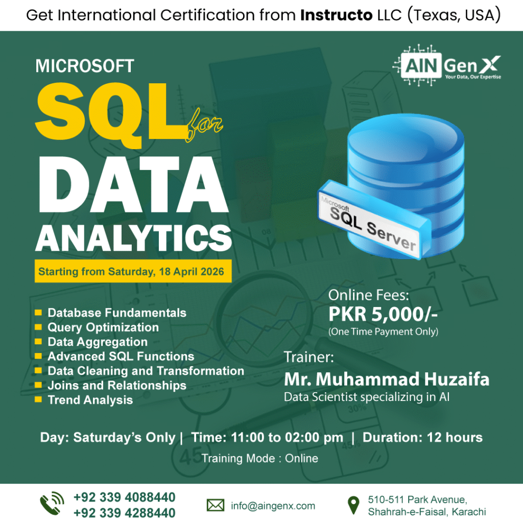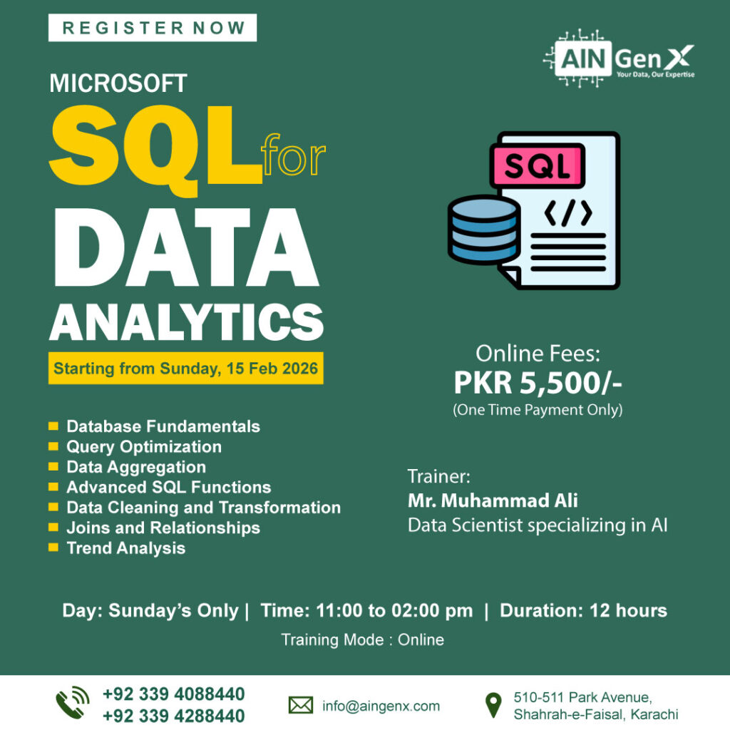 SQL (Structured Query Language) is one of the most essential tools for data analysis. It allows analysts to efficiently retrieve, filter, join, and aggregate data stored in relational databases. With SQL, you can answer critical business questions by analyzing trends, patterns, and performance metrics directly from raw data. Functions like GROUP BY, JOIN, WHERE, and window functions make it powerful for handling large datasets. SQL is widely used across industries because it is fast, reliable, and integrates easily with tools like Power BI, Tableau, and Excel. Mastering SQL is a strong foundation for anyone pursuing a career in data analytics.